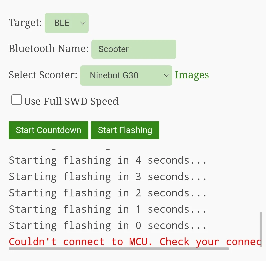 Sollten die Pins (wie bei Brightway) gesperrt sein, wirst du erst gar keine Verbindung mit dem Reflasher herstellen können.