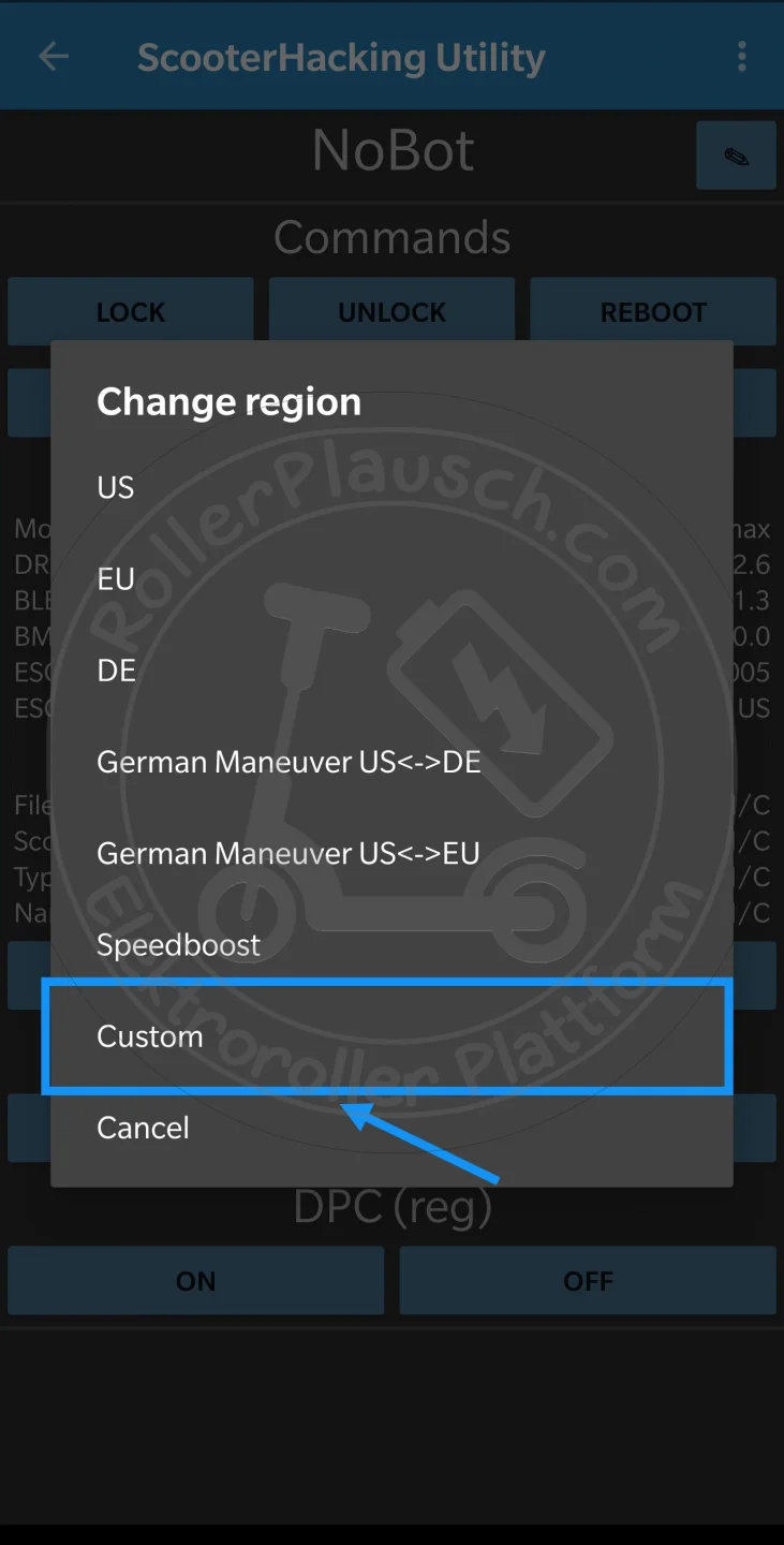 Diese über ScooterHacking Utility (Change Region>Custom) ändern oder Ninebot IAP zum Überschreiben der Seriennummer nutzen.