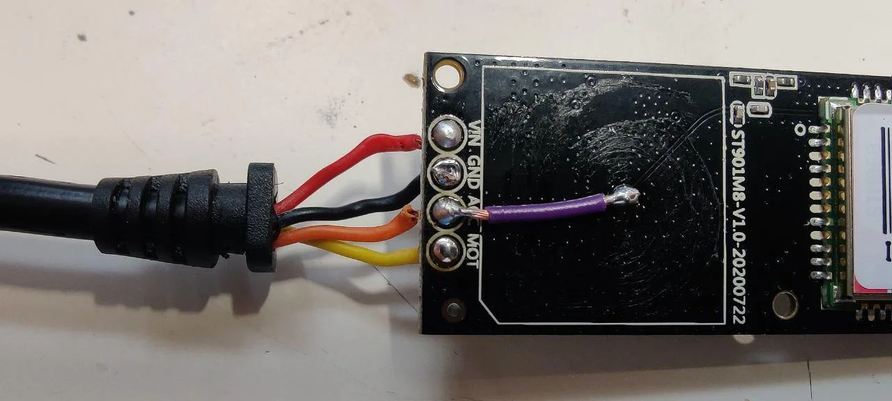 Habe einen Kupferdraht genommen und neben den Leitungen vom Dashboard von außen eingefädelt. Das andere Ende dann dort an der Stecker des Trackers gecrimpt, wo normal das orangene Kabel dran ist. Eine Probefahrt zur Kontrolle steht noch aus, aber meine Hoffnung ist, dass jetzt, wo die Antenne nicht in einem geschlossenen Metallgehäuse untergebracht ist (gut, vorher war ja gar keine dran..), sondern Richtung Himmel zeigt, auch die Ortung entsprechend besser funktionieren sollte.