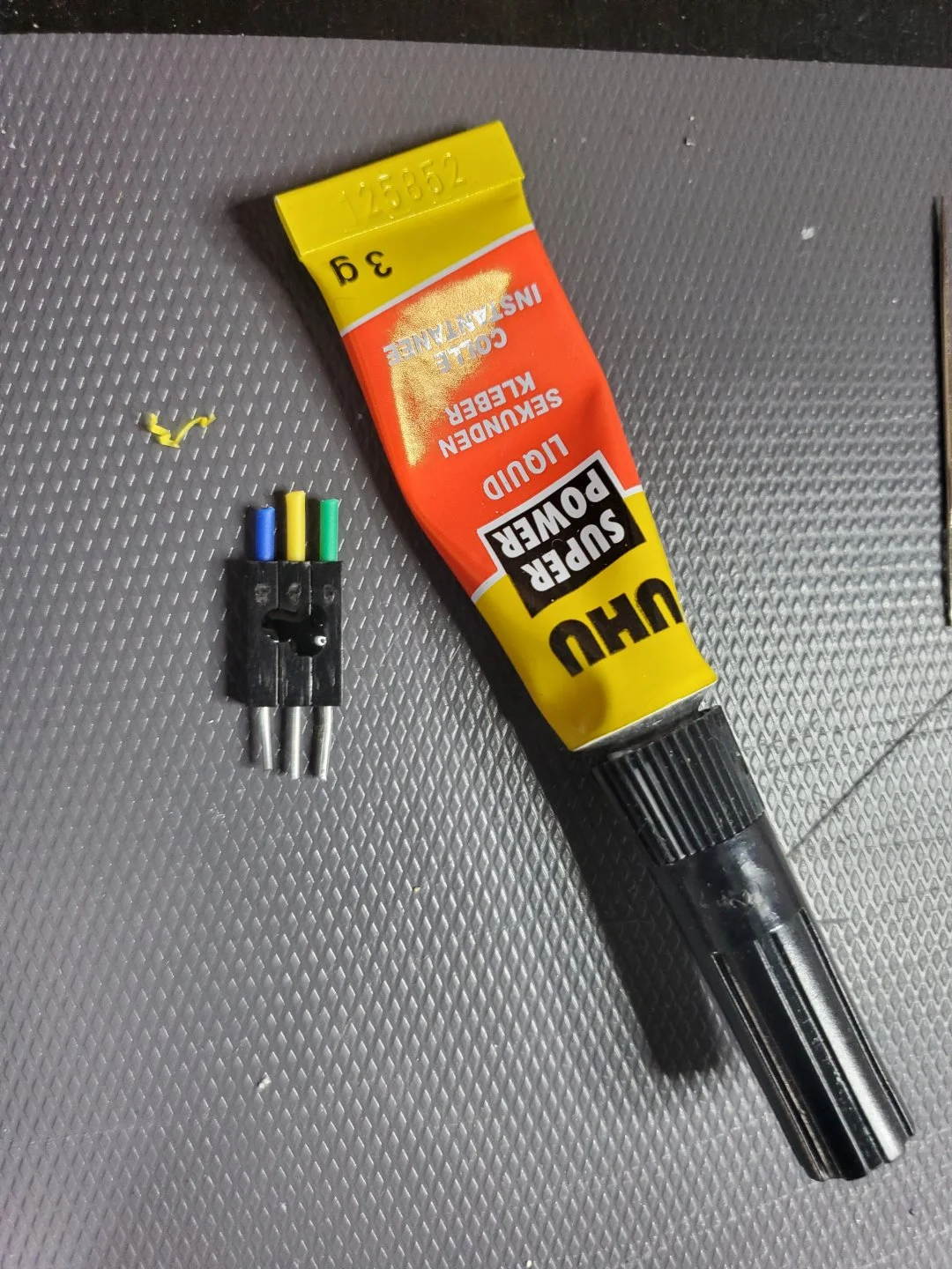 Für bessere Stabilität, klebt ihr die 3 Dupont Stecker zusammen.