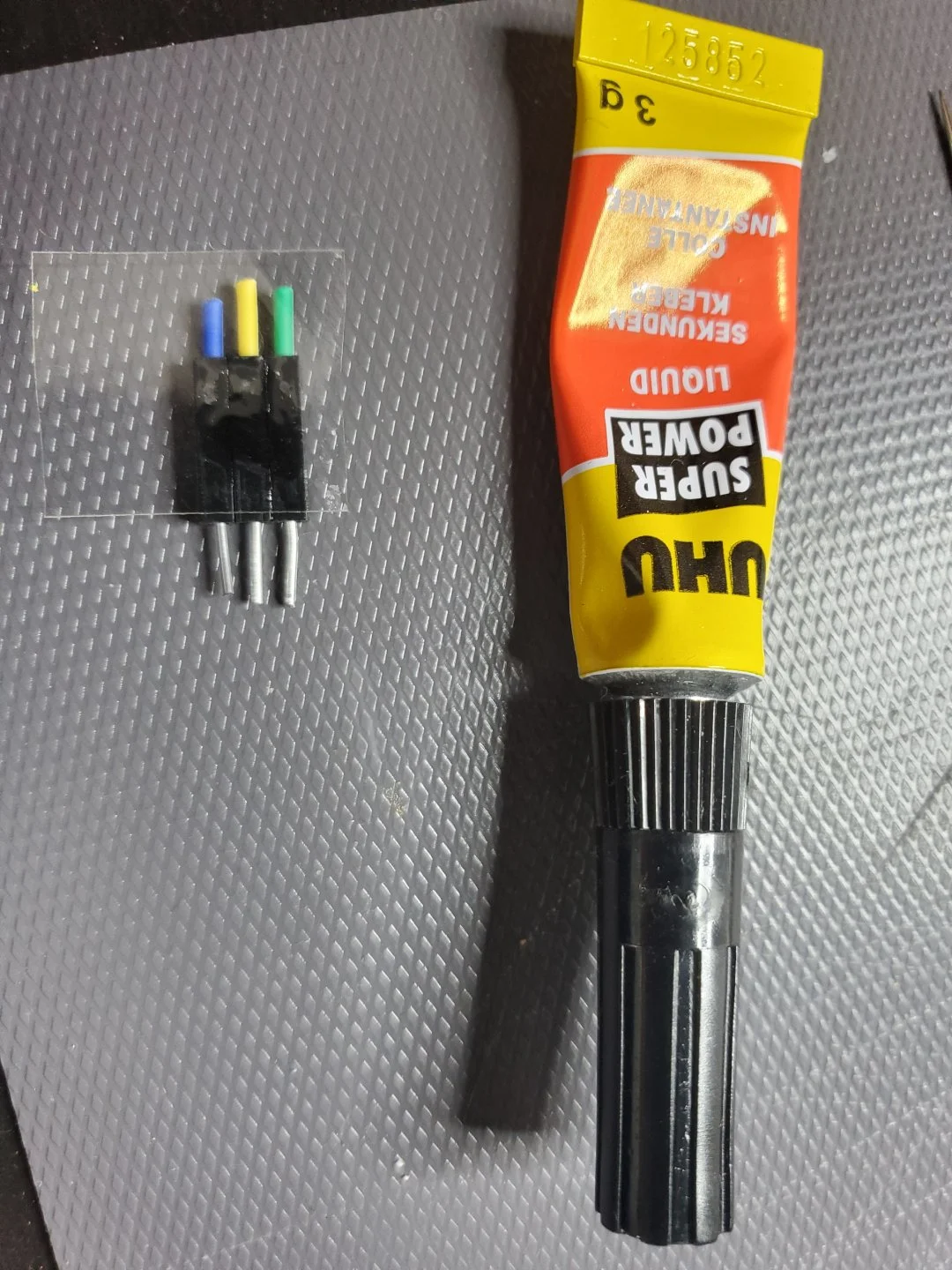 Legt die Stecker so dicht beieinander wie es geht, und träufelt ein wenig Sekundenkleber oben drauf. Anhang anzeigen 17887