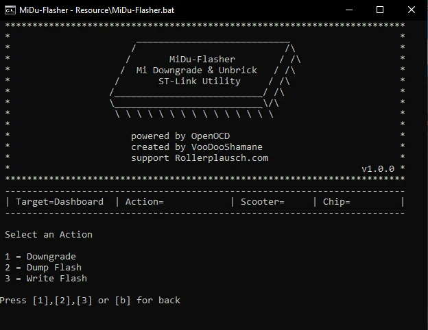 Es darf nicht das Dashboard den Strom verlieren, oder MiDu-Flasher beendet werden.