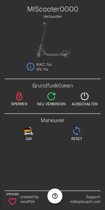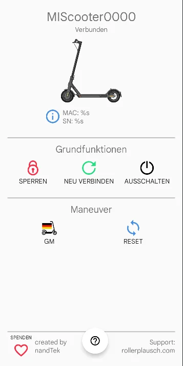 Die App verbindet sich nach erstmaligem Pairing automatisch mit dem Roller und bietet folgende Funktionen: