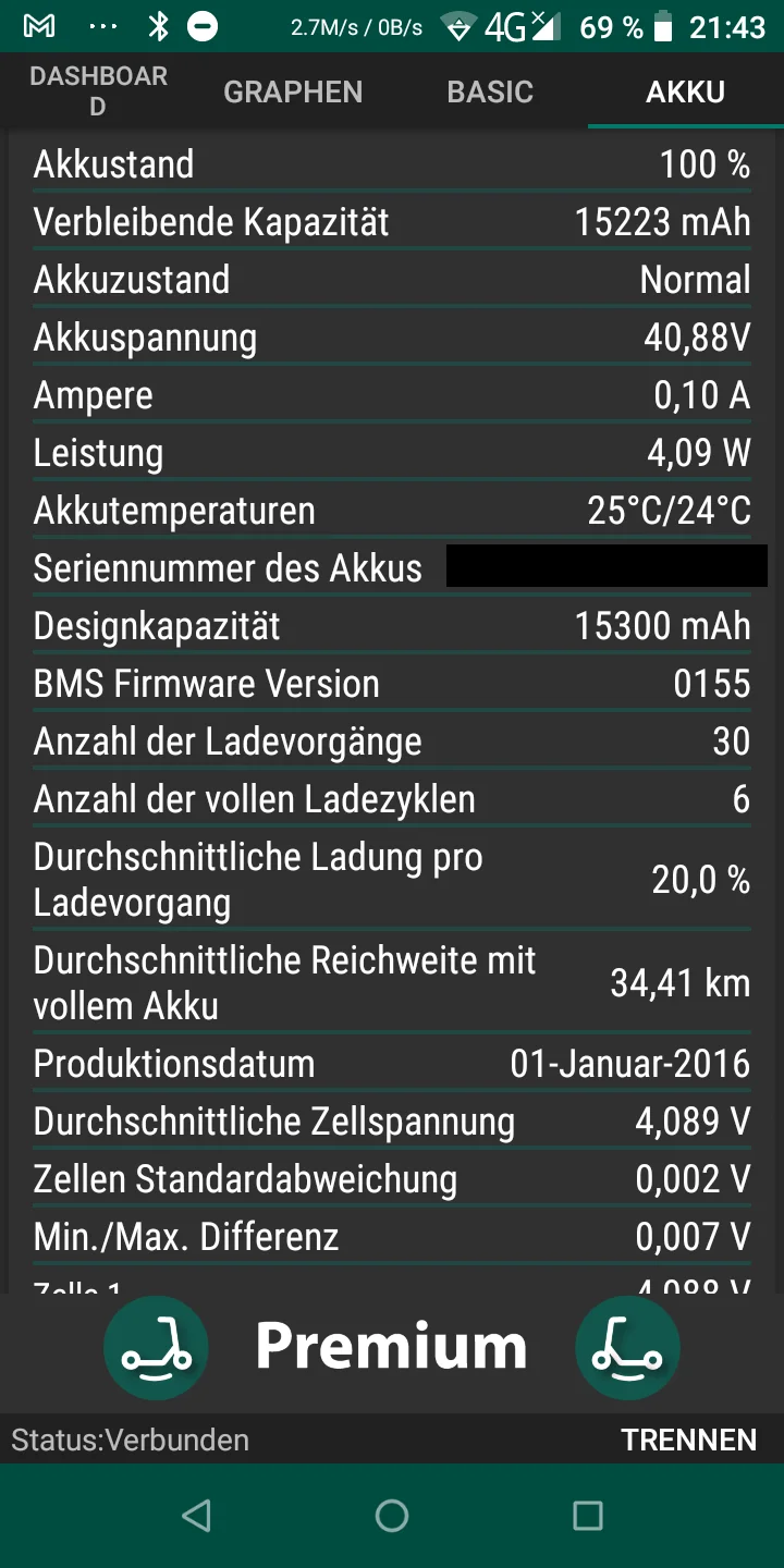 Du sagtest ja zwar Akku hat 100% aber wieviel Volt bekommst du bei genauer Prüfung mit einer App angezeigt?