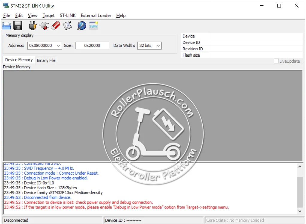 Ich hab gedacht versuche es mal selbst mit dem St Link den Controller zu flashen. Soweit so gut st link gekauft Kabelverbindung mir zurecht gemacht Controller ausgebaut aus dem Scooter alles wunderbar und dann ging es los. Er öffnet einfach nicht die st link Software. Hat jemand nen tip für mich woran es evtl liegen könnte.