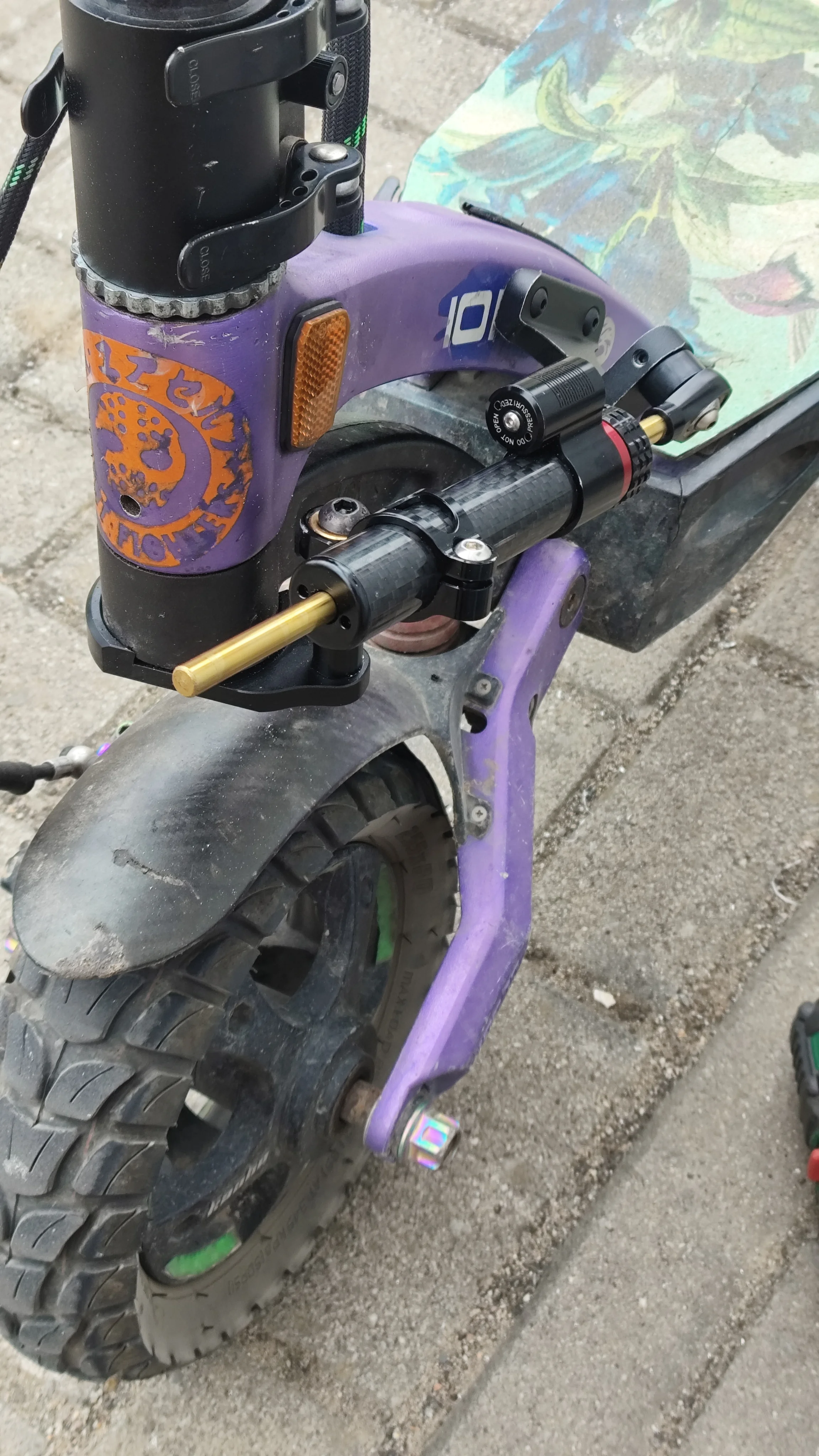 Am Wochenende noch ein Lenkungsdämpfer verbaut. Vordere stück ist Kaabo Orginal, hintere Teil von Teverun, weil ich keine Lust hatte, auf die Kaabo Anklemm-Lösung, zwischen dem Rahmen. Hätte auch nicht funktioniert, da dort der 3D gedruckte Spritztschutz sitzt 🤷‍♂️